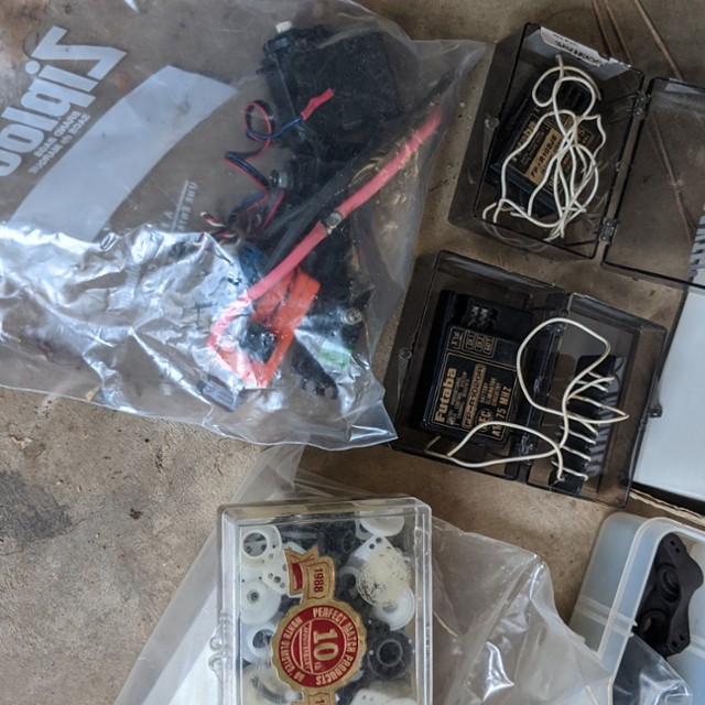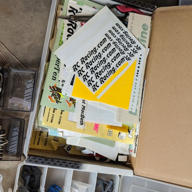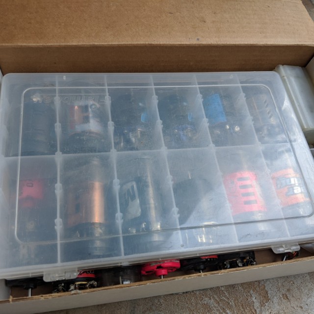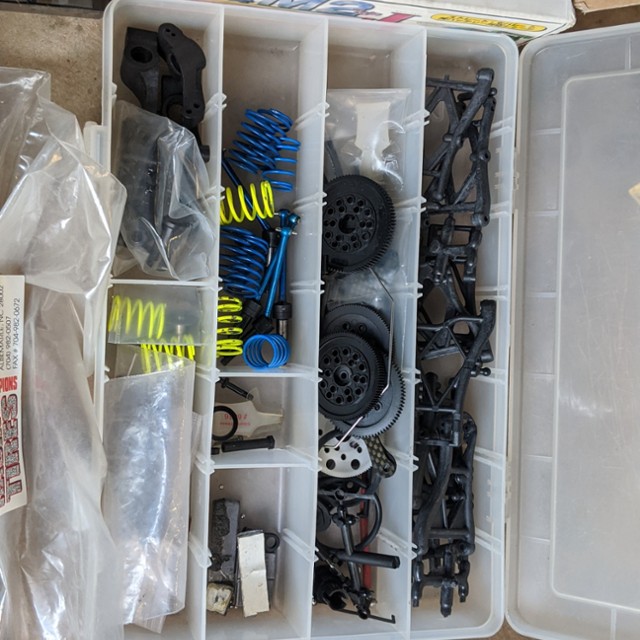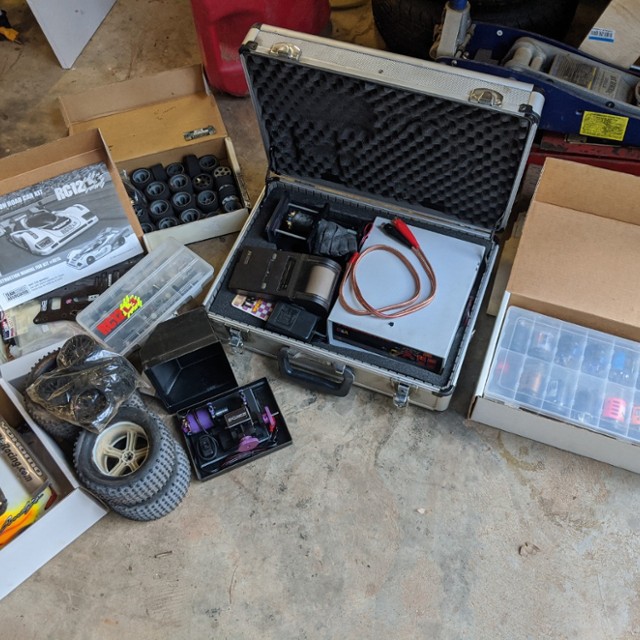 Here are some pictures of just some of the things I have. There are at least 3 more boxes of stuff, including my 'main' bag of chargers, parts etc, and a whole associated style bag of just wheels and tires. I'll have to go into the basement and pull those out at some point.